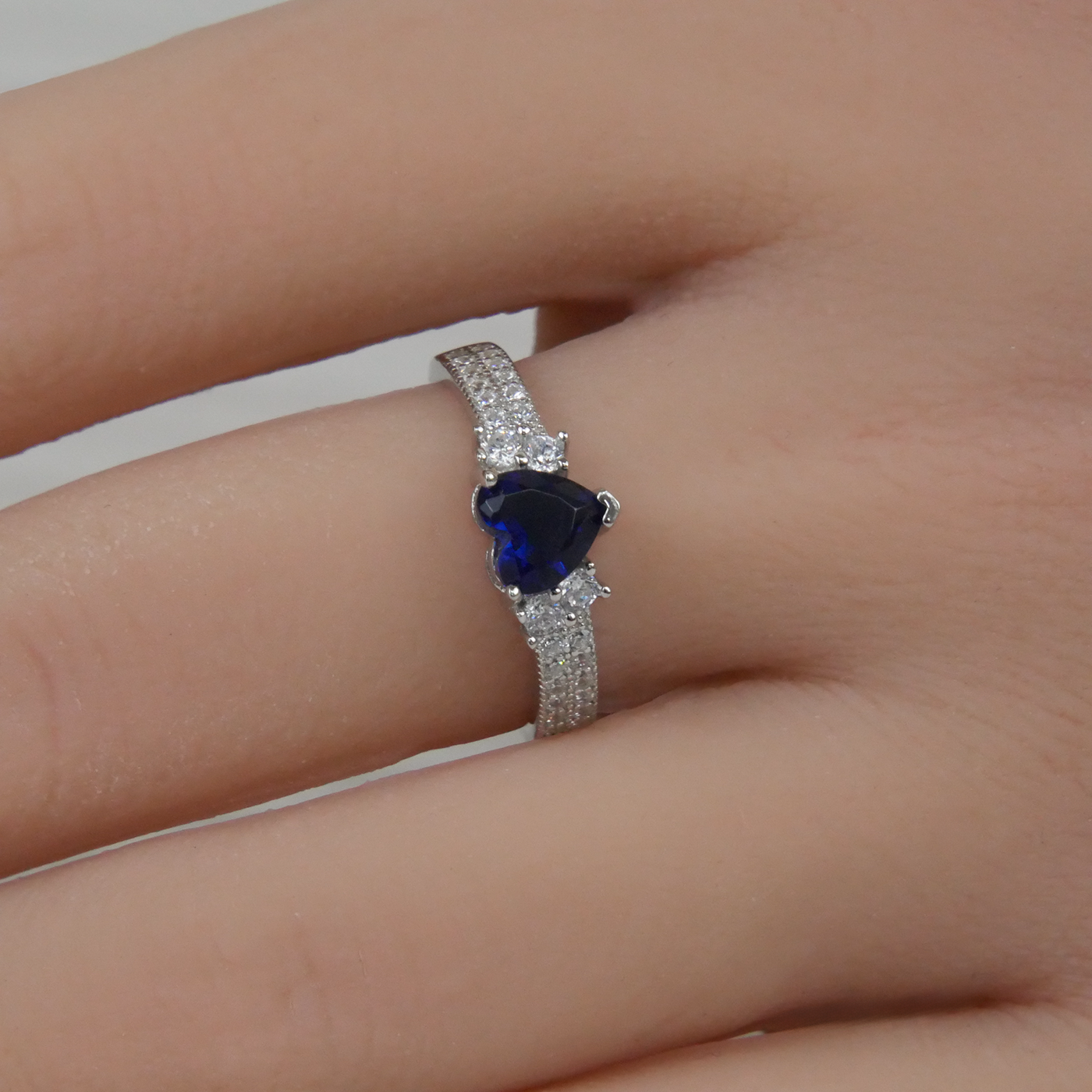 Experience the beauty of our Silver Heart Sapphire Colour Zirconia Ring.