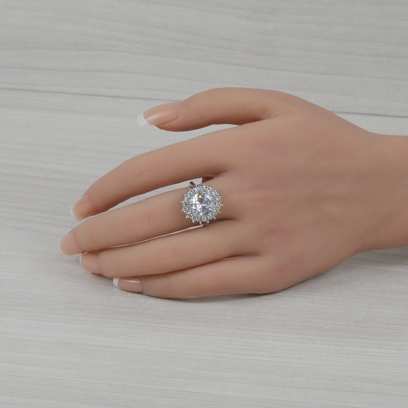 Experience the lavishness of our Silver White Big Zirconia Floral Ring.