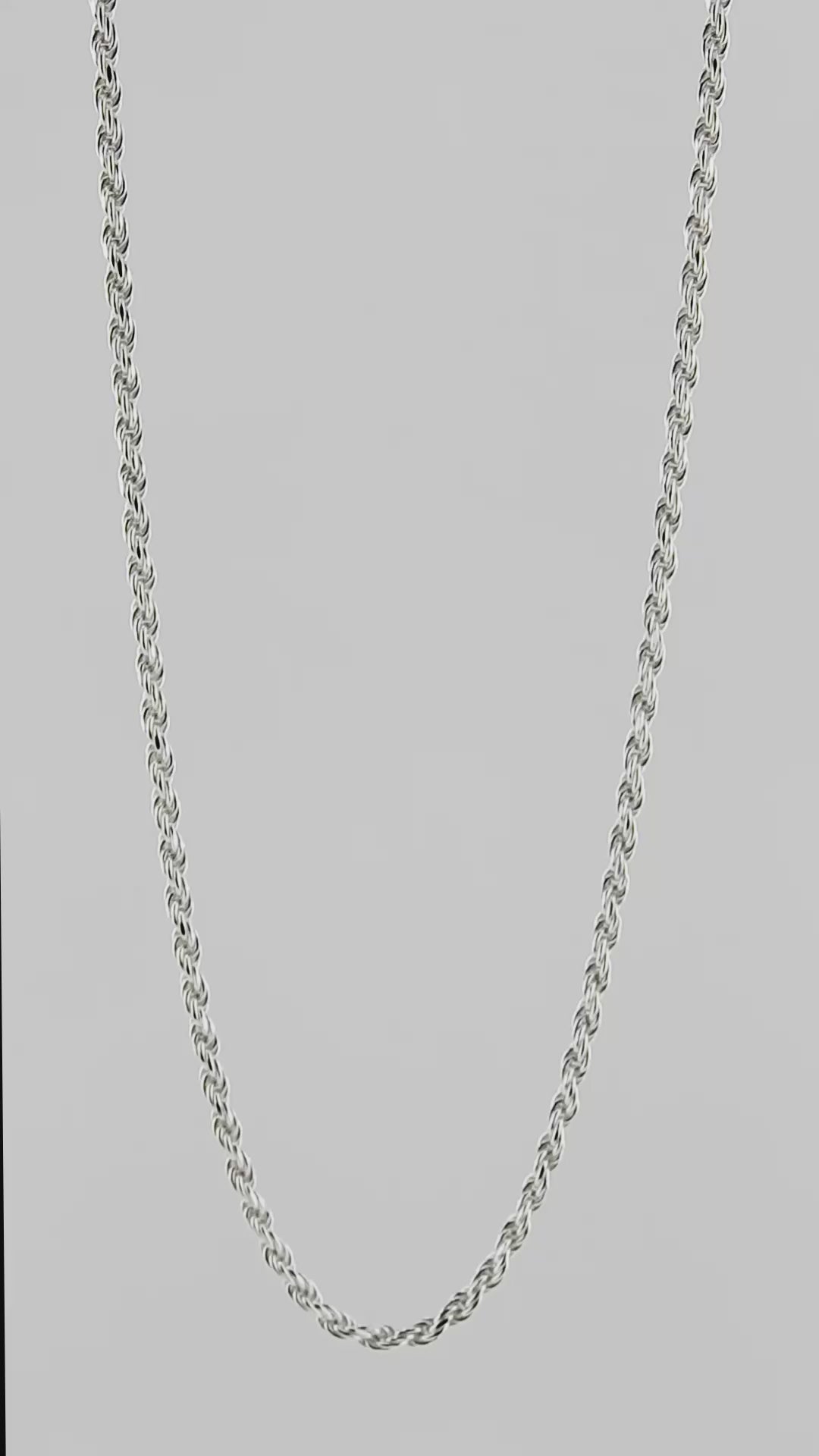 Crafted from solid sterling silver, this silver rope chain showcases a classic design with a striking presence.